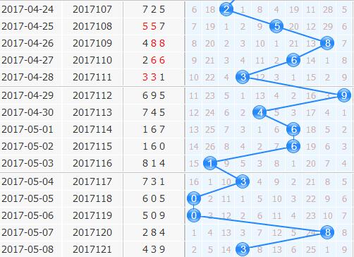 上期的开奖号码是439,十位上开出了一个小数,之前小数是连续四期的开出,但是分析之前的走势来看,小数连开的能力不是很强,本期不看好小数。3号球是上一期的开奖号,之前才开出过重复号,本期就不看好3号球的开出;4号球最近开出的间隔都比较大,都是十多期的,本期不建议关注4号球;再结合一个杀码公式,上期的和尾杀本期十位,上期和尾开出6,所以杀掉7号球。