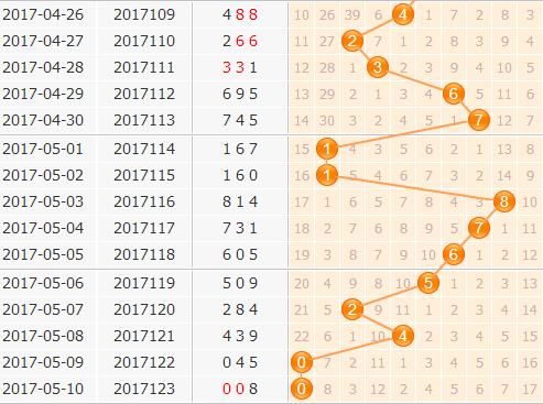 上期开出号码008,百位开出0号球。从百位上的走势来看,0号球上期重复开出,近期百位上最多之后两期连开的号码,并且出现的频率很低,在近30期也只有出现3期,那么本期0号球继续出号的几率不大,本期0号可杀;2号近期号码都属于冷号,在遗漏39期开出之后回暖也很慢,在间隔9期之后才再次出现,本期不看好2号隔3期开出;5号位置上近期走势遗漏排布很明显,一次比一次间隔期数要大,上一次间隔了10期开出,本期5号也可杀。