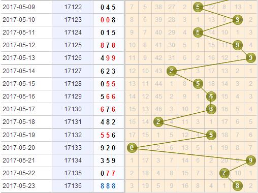 上期的开奖号码是888,个位是开出了8号球,这是一个偶数,偶数号码虽然上一次开出是连续5期的开出,但是分析之前偶数号码在个位上的走势来看,偶数号码连开的能力不强,本期不看好偶数号码的连开。0号球和2号球之前都是作为冷号的开出,但是个位冷号回补的迹象不明显,不看好这两个号码;5号球最近明显走冷,开出力度不大,不建议关注5号球。