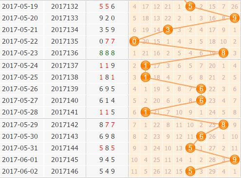 上期的开奖号码是549,百位开出5号球,百位上还是大号码的开出,最近大号在百位上风头很盛,开出的气势完全盖过了小号码,本期继续关注大号码的开出。7号球已经有连续29期没有开出了,这么大的一个冷号必须要防一下它的突袭;8号球近期回暖比较明显,可以关注一下8号球。