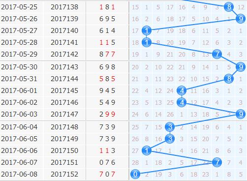 十位上期开出0号球,这一次开出延伸的比较大,振幅是开出了7,完全就是一个偏转,最近十位出号来回的波动开始增大,本期不看好小振幅号码。6号球已经连续23期没有开出了,2号球也是一个非常大的冷号,这两个号不建议关注;结合一个杀码公式:上期的百位乘以2取尾杀本期十位,上期百位开出7,7*2=14,所以杀掉4号球。