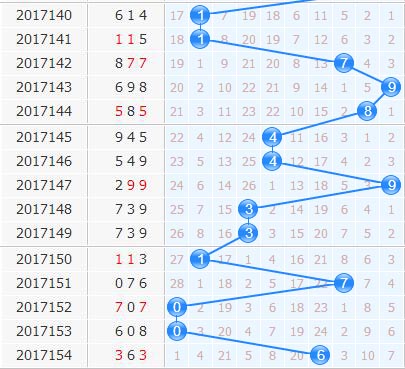十位上期开出6号球,最近十位的走势很明显的规律就是中大跨度出号,且中小号开出次数比较多,大号处于弱势阶段,本期中小号开出几率较大,建议大家杀号的避开这一块。另外根据杀号公式:上期和尾加跨度之和取个位杀本期十位一码:2+3=5,本期十位重点推荐杀一码:5