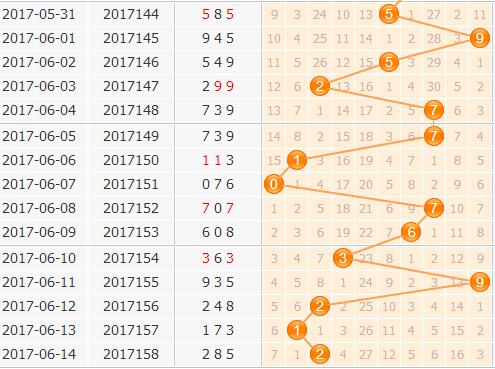 上期开出号码285,百位开出2号球。从百位上的走势来看,2号球在上期隔期开出,而隔期号在百位上非常少见,因此本期不看好1号球隔期开出;而且在近期振幅两期拉大之后开始渐渐缩小,范围锁定在小数之中,因此在距离上期奖号2号最远位置的两个振幅点上的8号和9号球本期不看好。
