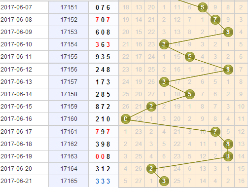 上期开奖号码为333,个位上开出了一个小数3号球;从个位走势图上看,经过连续3期的大数纠缠,这两期回落到了小数上面,而近期的大振幅夹杂着邻码出现,本期大振幅会稍微中和一下走势,至此0号球首先可看好;由于3号球近期的表现良好,频繁热出,本期可关注重复落号现象;而斜连号也是近期比较在意是问题,本期4号球可关注,最后拉动同样3点振幅位置可关注6号球。本期推荐个位胆码:1346以上分析由3d之家胆码专家喜太郎独家提供,请谨慎参考。