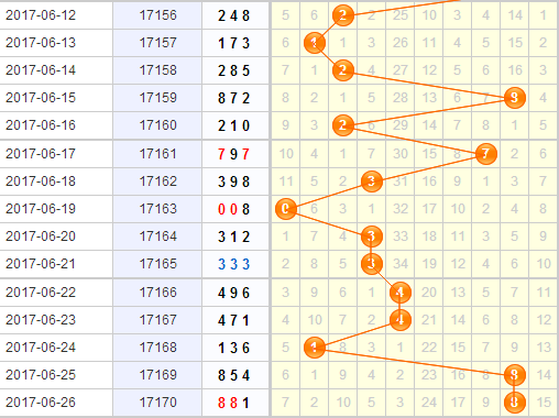 上期的开奖号码是881,百位上还是重复开出了8,近期百位上已经在十期里面三次开出了重复号,上一次重复号开出之后开出的不是邻码也是附近的号码,总之就是小振幅的号码开出,本期而已可以在附近找容易出号的号码。7号球和9号球作为邻码是要重点关注的,5号球是最大的一个冷号,本期可以防一下。