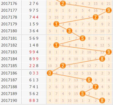 上期的开奖号码是883,百位上开出8号球,从近期百位的大小走势来看,目前已经有4期大数连续开出,并且在这样大振幅拉动的局面下保持住,十分不容易,而且近期大数基本上都出过了,现在就差一个9号本期重点关注,上期奖号8号另一个邻码7号也可小防;随着走势振幅的拉动已经有多期没有看到,本期要防大振幅反弹,关注2号和3号。