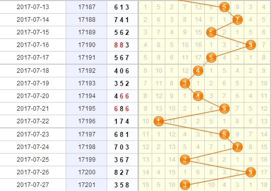 上期的开奖号码是358,百位上开出了奇数3号,从百位走势上看,近期虽然偶数依旧保持着自己高产的地位,但是奇数已经隐隐追赶上来,在奇数上首先最为关注走势拉动最合理的9号;3号上期隔期出号,走势最热,可关注连开走向;邻码在近期出现频繁,本期关注2号球;5号目前填补中间位置号码的空缺,可小防一下。