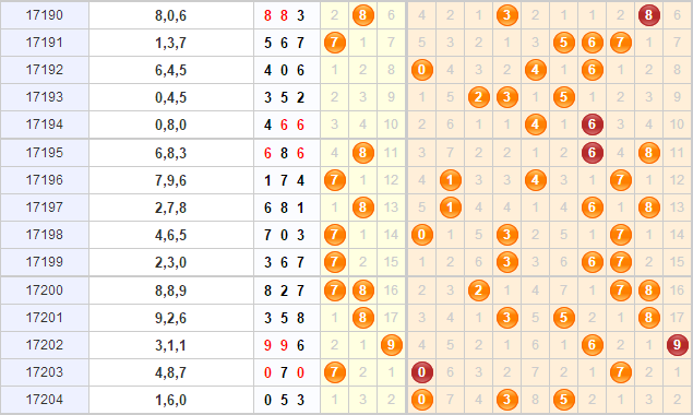 上期开奖号码是053,开出了小大小,偶奇奇的组六形态。分析近期的综合走势图,0号上期努力了一把,出现了久违的连开,不过它近期的出号能力不足以支撑3期的连开,本期可杀掉;1号已经遗漏了7期,近期1号走势不乐观,很快就要超过近期最大的遗漏了;6号原来在隔期和连开的状态上,自从出现了2期的间隔之后似乎出号积极性不如之前强,本期看淡6号;9号最为大冷号爆冷,近期回暖动作迟缓,不建议本期开出。