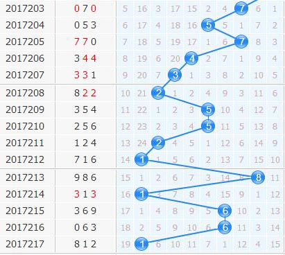 十位上期开出小号1号球,十位最近的出号一直呈现大小交替开出的走势,且最近都是1号球和6号球交替开出,本期不排除6号球再次反弹,大家在杀号的时候注意一下。另外结合杀号公式:上期和尾加跨度之和取个位杀本期十位一码:1+7=8,太阳风根据杀号公式分析:本期十位可以重点杀一码:8