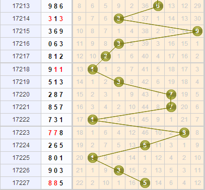 个位上是开出了5号球,从个位的走势分布上看,1号在多期的规律开出中逐渐要拖不住这样的走势了,参考个位走势来说,1号球接下来面临的形式比较严峻,如果无法继续走热,那么接下来走冷为主,本期看淡1号;3号位置在隔期号上,近期隔期号很少有开出情况,本期不建议3号在反转出现;9号目前就是一个冷号的遗漏走势,之前也曾经遗漏30期,本期可杀9号。