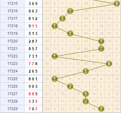 上期开奖号码为707,个位开出7号球,本期结合个位上的走势来分析,3号和5号都近期比较热门的号码,尤其是5号,在近期刚刚兴起,而这一次5号在隔期号位置上,而隔期号相对近10期来说已经不受欢迎了,出现几率非常低,因此本期5号可杀;3号从走势上明显可以看到,走势间隔持续走低,呈现越来越冷的状态,而0号球近期一直处于沉睡当中,已经相继遗漏了24期,本期不看好0号。