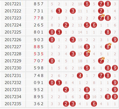 百位:上期百位开出小奇数3号球,百位上大号连续开出两期之后上期小号重新出号,小号的出号周期缩短,不过小号连续开出的可能不大,本期建议关注大号的重新开出。本期金钥匙推荐百位胆码:24568