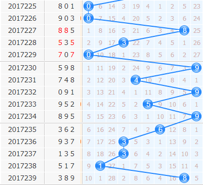 十位上期开出偶数8号,在十位上奇数虚耗过度,不断以连开形式来表现,而偶数没有两奇数的连开模式越来越大,而是相对控制住了局面,现在趁着奇数消耗过多,本期偶数是有机会一举反击的。其中2号球遗漏期数过大,本期不看好2号爆冷;而本期邻码要慎重小心严防9号球。