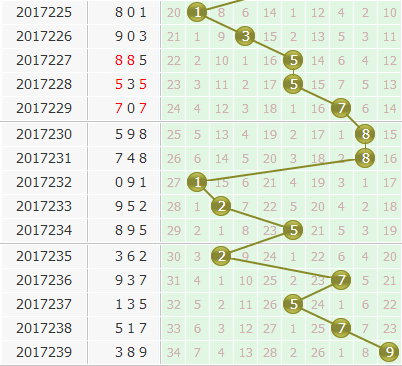 上期开奖号码为389,个位开出9号球,本期结合个位上的走势来分析,1号目前出号的间隔期数越来越大,目前一路冷态明显,本期不看好1号开出;2号经过一次走热之后,最近整体热度保持性比较差,短期内是比较难翻身的,而5号已经连开火了很多期了,一直在断断续续的出号,经过上一次2期间隔开出之后,本期不看好5号再隔2期开出。