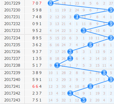 十位上期开出了5号球,从十位走势来看,由于5号球上期的开出阻挡了近期一直向左延伸的大势,但是所幸5号球拉动的幅度并不大,阻挡不了整体的大势所趋,因此在左侧的几个号码就要小心的,而由于近期热码出现较多,在上次逐渐转为冷号开出,本期是比较偏向冷码的,因此看好024这三个冷号,另外由于2点振幅的出现,本期继续防7号球。