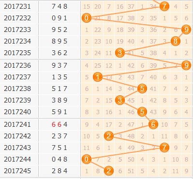 上期百位开出小号2号球,近期百位的出号位置不太稳定,不过目前是小号连续开出亮起,2号球这是在爆冷之后的首次开出,本期建议大家可以小防一下2号球的连续开出。另外,参考之前的号码走势分析,上期出号跨度有所减小,本期建议重点关注中大跨度号码开出,也就是中大号才是本期需要关注的重点。小孔明本期重点推荐百位胆码:25678