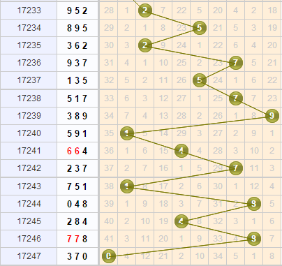 上期开奖号码为370,个位开出0号球,本期结合个位上的走势来分析,1号位于0号的邻码位置,而近期走势来回拉动相当剧烈,连停缓下来的趋势也没有,因此本期不看好邻码1号开出;7号在频繁开出3期之后,出号间隔越来越大,本期看淡7号;8号由于上期振幅大幅度拉动的改变,本期不看好继续隔期开出。
