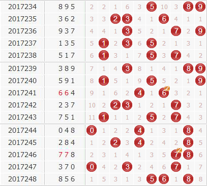 百位:上期百位开出大偶数8号球,百位上2路号码在预期中出号,从最近012路各路的表现来看,2路号码本期继续出号的可能性不大,本期建议关注一下1路号码的出号。本期金钥匙推荐百位胆码:13467