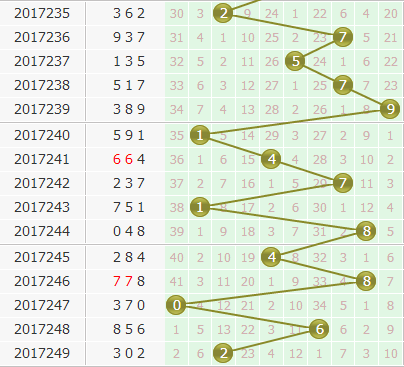上期的开奖号码302,个位上开出的是2号球,从走势上来看,个位最近比较喜欢来回交替出号的走势,呈现一个“Z”字型的出号规律,因此本期也很明显按照规律可以杀掉它上期开奖号附近的号码,首先杀邻码号3号,也因为3号遗漏期很长,本期较不看好;另一个是0号,落点位置也小于近期的出号振幅,此外,由于交替出号的形式,也导致了近期没有什么重复号码开出,因此推荐杀掉2号。