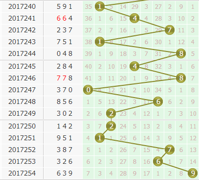 个位上期开出9号球,从个位的走势图上看,上期大数一举发力,直接拉到了最大数9号球位置上,有遗漏13期后连开2期的2号这个先例在,本期9号也要防一下继续连开落号;另外大数近期那么明目张胆的攻击,很容易迎来小数的反弹,0号球要密切关注;另外这几期号码多在两侧出号,忽略了中间号码,本期关注3号和4号。