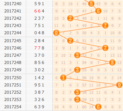 百位上开出了6号,从百位上的走势来看,3号近期不断出现在百位走势上,按照以往规律来说在密集的表现之后,还是需要休息恢复一下的;6号是上期开奖号,之前的两次开出走势都非常冷,立刻转热的可能性不大,本期不看好6号继续开出;9号在近期刚表现过一次,而按照目前振幅走势看,接下来振幅应该还会变大,本期不看好9号开出。