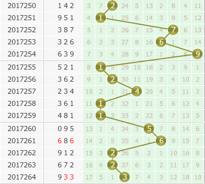 个位上是开出了3号球,从个位的走势分布上看,近期号多出现在小数上面,因此也出现了两个热号,目前1号在大热之后热度已经开始消退,本期看淡1号;而同样连开2期的2号球之前也出现过这样的情况,但是接下来它为此遗漏了5期,本期不看好2号再隔期开出;3号是上期的开奖号,近期连开的号码基本是热号走向而出,而本身是冷号的3号继续连开的几率不大。