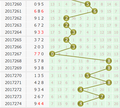 个位上期开出4号球,是一个小数,从个位的走势图上看,在前期小数一度爆发连开表现,使得大数没有出号的机会,而近期大数终于有了起色,成功4期连开表现,但是小数仍有余热存在,和大数组成了交替出号的局面,上期小数开出,本期看好大数表现;而大数中近期冷号和热号交替出现,本期较为看重冷号开出,关注号码69,隔期号7号可防,小数上可防邻码3号。
