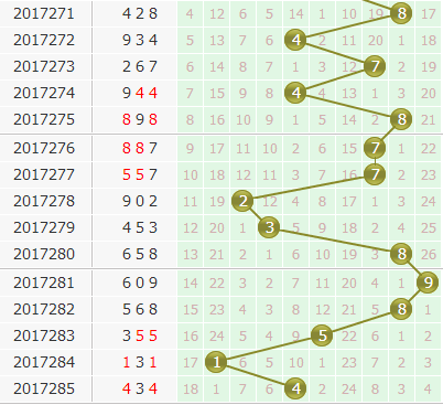 个位上开出了4号球,从个位的走势分布上看,结束了大数的连开之后,小数近期倒开始发力了,整体振幅开出也比较小,目前出号最佳的还是在前段和中段的位置上,因此距离上期最远的8号和9号本期可杀;而5号目前出号的跨度很大,开出间隔而且是越来越大,在短期内快速回暖是相当困难的,本期不看好5号。