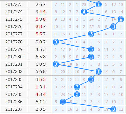 十位上期开出8号球,近期的十位号码走势比较集中在中小号区域,上期突然转向了大号位置,开出了遗漏10期的8号球,结合8号球之前的走势分析,本期不太有可能连续开出,所以建议大家本期十位首杀一码:8。太阳风本期根据十位杀号公式分析:上期和尾加跨度之和取个位杀本期十位一码:5+6=11,本期十位重点杀一码:1