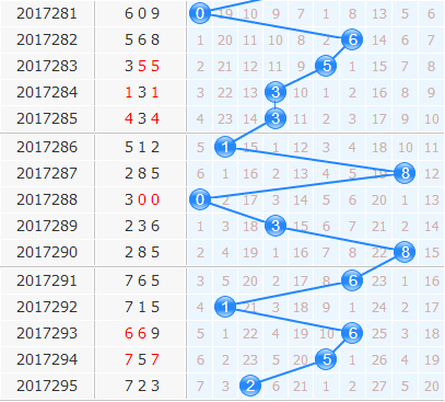 十位上期开出了2号,从十位走势上来看,近期大数和小数在连开上面相对都是比较密集的,两者都很少有单期开出的情况发生,小数上连开能力比大数要更强一些,近期在短暂的歇了几期之后,本期继续看好小数开出;其中小数上有一个大冷号4号,已经有21期没有出号,相对来说这个号码已经被遗忘了很久,本期十位胆码看好0123。