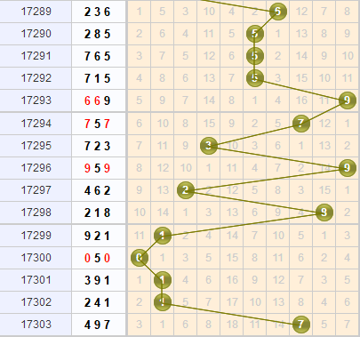个位上开出了7号球,从个位的走势分布上看,热号1号已经在近5期内集中表现了3期,通常个位上有过连开的号码接下来都有较长时间的遗漏趋势,因此本期不看好1号隔期再开;而近期号码多集中在了小数区域内或者是之前的大数区域,出号也较为极端,因此中段区域号码已经被遗忘了许久,其中已经18期没有开出的4号预计本期继续走冷;6号在7号邻码上,近期除了小数上较热的1号拉动0号开出之外再无邻码,本期出号率极低的6号球可杀。