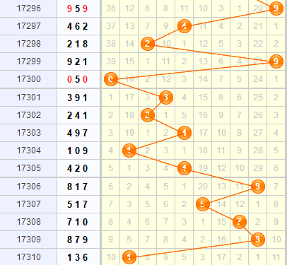 百位上期开出质数1号,从百位走势上看,近期质数和合数呈现交替来回的走势,两者的出号情况都差不多,来回出号保持一致的统一,非常具有规律性,因此本期较为看好合数的表现;其中8号形成了一个长远的隔期号,但是隔期号在百位上近期出镜率很低,因此本期胆码中可排除了8号位置。