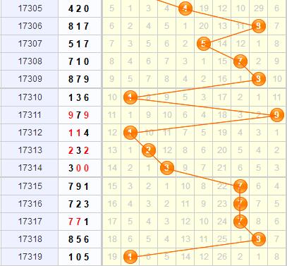 上期的开奖号码是105,百位上开出了一个1号球,结合近期的百位走势图分析,在3号位置上之前两次出号都很有规律性,都是在间隔了12期之后爆冷出号,现在3号又有持续走冷的现象,本期可杀3号;7号由于近期连开过度,在3期连开之后就停止继续表现了,本期看淡7号;8号在隔期号的位置上,近10期内对隔期号也不是太友好,只出现过这么一次,因此本期8号隔期出号的几率很低。