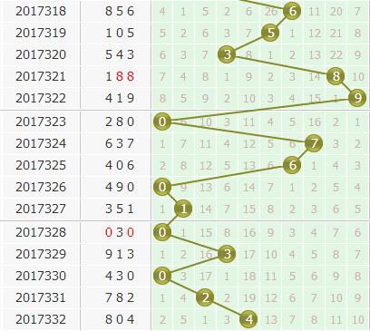 上期的开奖号码804,个位上开出的是4号球,按照目前走势看,整体走势终于开始移动了,而不是在小数之间来回移动开出,上期走到了4号位置上,大有向右走向大数的趋势,因此在小数上推荐杀掉出号积极性比较低的2号;上期开奖号4号近期接连都冷号爆出,继续连开的几率比较小,推荐杀掉4号球;9号按照目前的振幅开出程度来看,想要达到还是比较困难的,本期看淡9号。