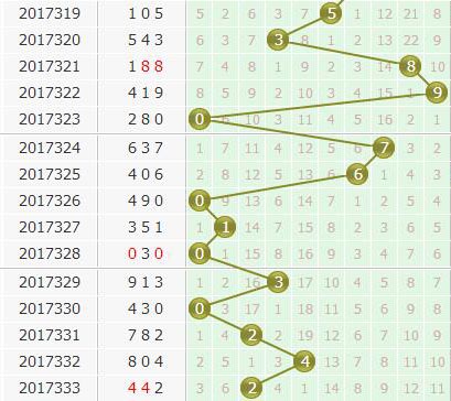 个位上期开出偶数1号球,从个位的走势图上看,偶数近期一反之前单期出号的微弱出号形式,而是开始猛烈的连开模式,到目前为止已经连续开了4期,本期有望继续爆发表现;其中4号在隔期位置上,虽然上两期也有隔期号出现,但是中间还是间隔了几期的,没有连续隔期表现,目前整体趋势右移,因此偶数上可排除掉4号球。