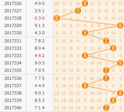 百位上期开出了7号,从百位走势上看,近期号码集中出现的位置依旧在大数区域内,尤其是最大的三个号码来回的出现,走势上增加了不少热度,而小数上就比较萧条了,由于近期的冷淡表现助长了较多的冷号,目前根据振幅显示,本期首先可以杀掉0号和1号球,在中间的4号球虽然出号频率非常高,但是近期随着走势的变化,出号的间隔在慢慢增加中,本期4号可杀。