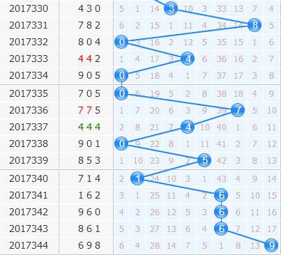 十位上开出了9号球,从十位走势上看,目前十位上的走势一路向右延续,在上期终于达到了足底啊书9号位置,近期开出号码当中没有邻码的出现,因此可杀掉9号的邻码8号;6号由于之前3期连开消耗量巨大,本期也不宜继续开出;另外0号球由于在前段时间大量的连开表现,导致近期出号力量不足,热度迅速消退下去,本期0号可杀。