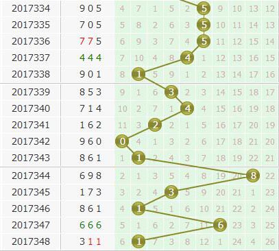 个位上期开出小数1号球,从个位的走势图上看,目前小数的连开爆发力虽然迅速的下降了,但是出号的频率依旧是相当高的,在走势上近期小数区域内前端的部分出号频率最高,1号在上期再次隔期表现,本期继续看好1号;在1号邻码位置的0号顺应上期向左拉动的走势,本期关注0号球;近期大振幅出现的次数越来越多,小数上最后防一个4号,而大数上面按照大振幅拉动的情况,看好已经遗漏了20多期的7号和9号。