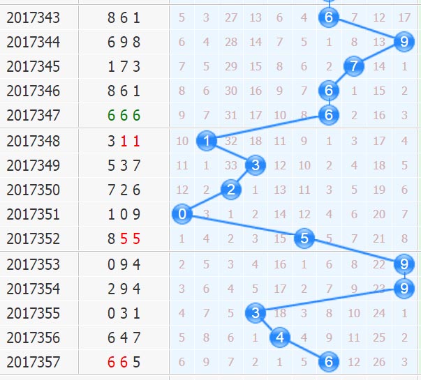 十位上期开出的是号码6,6号球在个位的走势其实也是比较一般的,这次遗漏了9期才开出,相比之前来说6号球最近的走势是明显走冷的,本期连续开出的几率不大,不看好重复号开出。太阳风建议大家本期首杀一码:6。另外,太阳风根据十位杀号公式分析,上期跨度加和尾之和取个位杀本期十位一码:1+7=8,太阳风根据目前的分析推荐大家十位杀三码:568