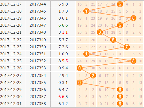 百位上期开出了号码6,这已经6号球在百位的第三期连开,现在6号球已经大连开过了,本期再开的可能性肯定非常小,本期不看好6号球;现在百位号码有持续在大号码地方取值,接下来号码肯定会下降走势,不看好大号码的再开,9号球近期出号偏冷,本期不看好9号球;2号球虽然之前回暖,但是之后又开始走冷,不看好它。