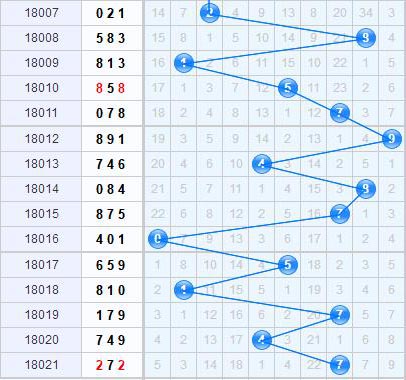 十位开出7号球,从十位走势来看,近期十位上的走势呈现阶梯状的来回拉动,每次回拉的振幅都会缩小一些,在整体上是在缓慢的右移的,我们看两次回拉的振幅从4点变为了3点,本期首先看好2点以内振幅落点,推荐5号和6号球;顺着走势移动又可以关注一下9号球;为了防止大振幅突袭的拉动,本期防范一个近期出现的5点振幅,严防2号开出。