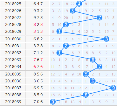 十位上开出0号球,从十位走势上看,上期拉动出了近5期最大的一次振幅,直接把纠缠于大数区域开出的号码直接拉动到了小数上,0号球开出得非常坚决,近期小数上也多有号码连续诞生,结合小振幅出现的频率,推荐号码2号和3号;当然我们也可以看到这几期振幅在逐次递增当中,上期振幅点为5,本期严防大数6号和7号开出。