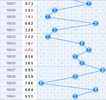 十位上期开出了号码5,5号球在中间位置上,近期的出号频率比较多,短期内已经开出了两次,走热状态明显,本期5号继续关注;在近期大数上号码多次邻码形态开出,本期注意一下上期奖号5号的两个邻码4和6,尤其是4号球,沿着上期走势拉动,容易向左继续拉伸,另外在近期3点振幅号码开出的频率也比较高,在小数上本期防范一码2。