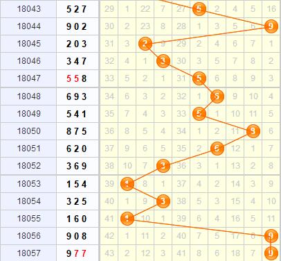 百位上期开出了9号,在近15期百位的走势中,上期9号球重复开出,而作为邻码位置的8号球依旧没有什么动静,看走势预计还会继续遗漏下去;而中间的5号球在前段时间和6号关系比较密切,但是总体来看5号球遗漏情况比较严重一些,已经持续走冷了,本期可杀掉5号;0号球位于最大的振幅落点上,近期已经遗漏了43期,依旧在沉睡中,本期看淡0号。