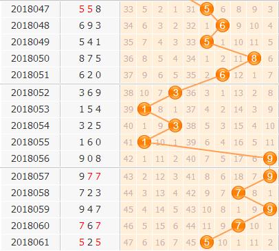上期的开奖号码525,百位上开出了一个5号球。结合近期的百位走势图分析,0号球目前依旧处于长期的沉睡状态,没有清醒过来的迹象,已经遗漏了47期了,本期继续看淡0号;6号球虽然在5号的邻码位置,但是目前大数上的号码正在逐渐向左拉动前进当中,后退在6号球位置可能性不大;7号在上上期已经隔期出号过,走势比较接近9号球,近期连续隔期出号的号码还没出现过,基本机会只有一次,因此本期不看好7号隔期开出。