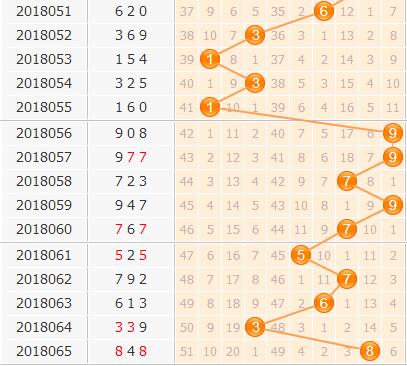 上期的开奖号码848,百位上开出了一个8号球。结合近期的百位走势图分析,目前走势在往小数前进的过程中,在上期遭到了大数的阻碍,上期开出奖号8号;而8号其实是近期的一个流浪号码,持续遗漏了多期,没有背景的8号在本期很难继续开出;7号球在之前已经连续2期都隔期出号,之后热度没有继续提升起来,本期看淡7号;小数上结合振幅表现,建议杀掉0号。