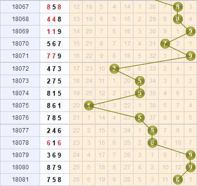 个位上开出了8号球,从个位的走势分布上看,目前号码陆续开出了近期几个遗漏期数比较大的号码,并且走势上一路向右延伸,号码回补的情况基本比较少见,本期建议杀掉已经有5期没有开出的5号球;另外近期几个连开的号码要么是间隔期在10内的号码,要么是隔期走热的号码,而8号球这一次拉动的遗漏期过长,本期不建议继续看好8号开出;加上近期小振幅的盛行,建议杀掉0号球。