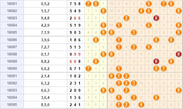 上期开奖号为241,小小小、偶偶奇,组六形态。结合综合走势图分析,1号球在近期起到了一个非常关键的支撑作用,目前走热的几个号码和1号都有莫大的关系,可以说是1号一手带热的,上期1号球再度开出,结合斜连号的表现来看,本期0号关注出号,同时1号球继续盯防;目前走势上还有条更长的斜连号,一路拉动开出的号码不在少数,本期关注5号球开出;7号自从爆冷号一直没有出号,目前又间隔了5期,本期可小防。