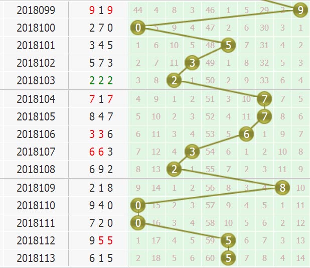 个位上期开出了重复号5,5号球近期连续开出,最近个位连续两期都是开出了重复号,且两者间的跨度还是比较大的,结合近期的个位号码走势分析,本期建议大家重点关注中大跨度号码开出,也就是本期出号位置变动会比较大,本期喜太狼结合号码分布情况来看,建议大家重点看好中小号号码开出,具体推荐个位比较看好的数字有:01389