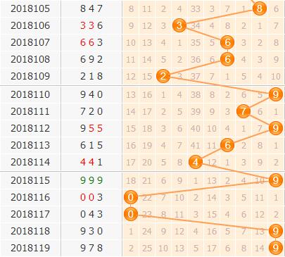 百位上开出大数9号,从百位走势上来看,大数目前占据了百位上大部分的出号来源,并且连开能力在近期得到了大大的提升,而小数目前可塑性不大,出号能力上依旧受到了压制,本期建议继续看好大数表现;结合近期走势振幅来看,在大数区域内走势除了连开号码9号的活跃之外,没有邻码诞生,因此本期可排除8号球。